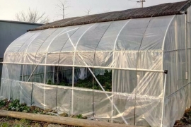 本大棚在薄膜的外面覆蓋了一層遮陰網,遮陰網遮光率高,兩側可用卷膜桿卷起,使用非常方便