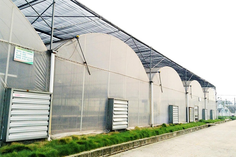 該產品由基礎、框架立柱,頂部拱管三大部分組成。點式獨立基礎,使大棚根基牢固;立柱采用熱鍍鋅方管,大大增強抗風抗雪強度;頂部由熱浸鍍鋅鋼管排列成平滑圓弧形,牢固兼美觀。同時天溝采用2mm厚熱鍍鋅板冷彎成型,容量大,排水及時;頂部天溝處和大棚四周均設置搖膜通風系統,是大棚內部氣流通暢。此產品可根據需要實現相關配套設施,以便達到更理想的效果,如外遮陽系統、內遮陽保溫系統、降溫系統、加溫系統、噴滴灌系統等。