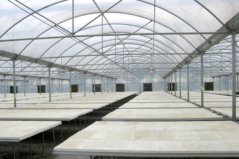 該產品由基礎、框架立柱,頂部拱管三大部分組成。點式獨立基礎,使大棚根基牢固;立柱采用熱鍍鋅方管,大大增強抗風抗雪強度;頂部由熱浸鍍鋅鋼管排列成平滑圓弧形,牢固兼美觀。同時天溝采用2mm厚熱鍍鋅板冷彎成型,容量大,排水及時;頂部天溝處和大棚四周均設置搖膜通風系統,是大棚內部氣流通暢。此產品可根據需要實現相關配套設施,以便達到更理想的效果,如外遮陽系統、內遮陽保溫系統、降溫系統、加溫系統、噴滴灌系統等。