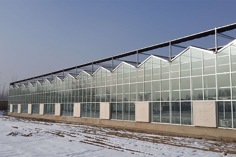 文洛式玻璃溫室為一跨三尖頂、雙坡面小屋頂桁架結構、多雨槽、具有美觀、吊掛能力強、透光性好、空間大、機械性能強等優點。