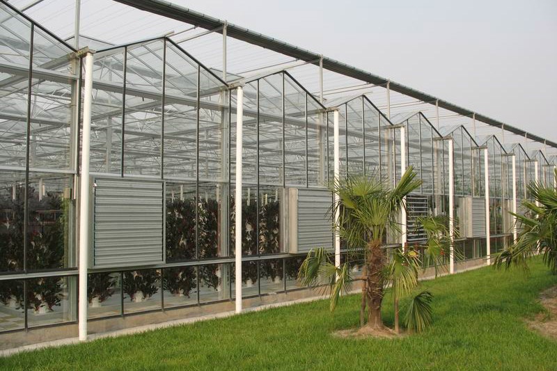 文洛式玻璃溫室為一跨三尖頂、雙坡面小屋頂桁架結構、多雨槽、具有美觀、吊掛能力強、透光性好、空間大、機械性能強等優點。