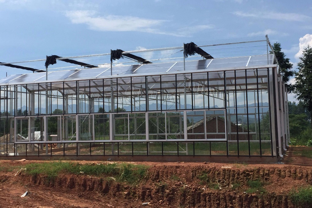 文洛式玻璃溫室為一跨三尖頂、雙坡面小屋頂桁架結(jié)構(gòu)、多雨槽、具有美觀、吊掛能力強(qiáng)、透光性好、空間大、機(jī)械性能強(qiáng)等優(yōu)點(diǎn)。